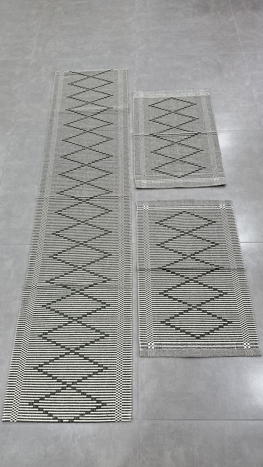 Você está prestes a conhecer pessoalmente um dos Kits de tapetes mais queridos da Internet. O tapete feito em Jacquard é minimalista na medida, elegante, e pode transformar sua cozinha ou banheiro. Este tapete além de lindo, é fabricado em fibras naturais de algodão e é uma peça super prática para o seu dia a dia.