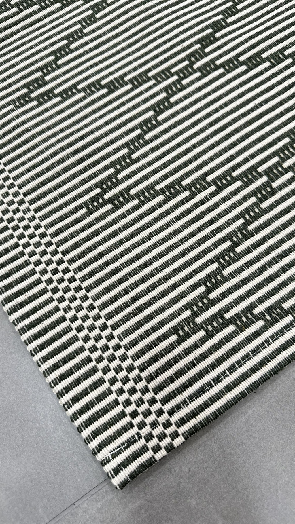 As passadeiras de 2 metros são feitas em tecido corrido, ou seja, tecidas direto no tear até o tamanho final. Por isso, o acabamento nas barras é diferente dos tapetinhos menores, que muitas vezes são cortados e recebem acabamento à parte. Esse processo garante uma peça mais resistente, com a beleza do acabamento final feito no próprio tear, preservando o estilo rústico e artesanal que só um trabalho manual pode oferecer.